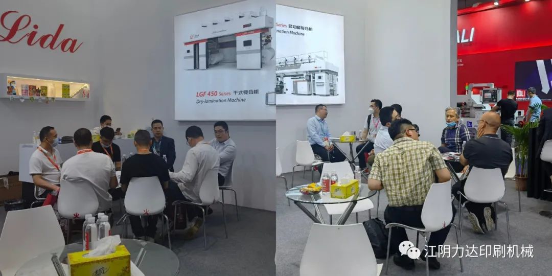 在“碳中和”、“碳達峰”、“限塑令”升級下的橡塑行業(yè),發(fā)展循環(huán)經(jīng)濟、節(jié)能減排等正當(dāng)其時。這不僅僅是各界熱議的話題與挑戰(zhàn),更暗藏著巨大的新市場、新機遇,眾多新能源、5G、新材料等企業(yè)聞訊而來。開展四天來,許多觀眾紛紛來到展臺進行商務(wù)洽談,其中公司最新研發(fā)的LDF 450型多功能復(fù)合機以及LGF 450型干式復(fù)合機收到了客戶的廣泛關(guān)注,咨詢客商不斷。該機型最高機械速度為450m/min,支持無溶劑、網(wǎng)線輥、半柔版、定點涂布等多種涂布方式,實現(xiàn)一機多用,為客戶節(jié)約更多的成本,實現(xiàn)更高的經(jīng)濟效益。